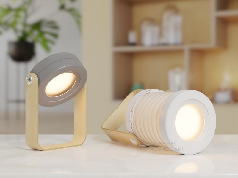 poignée en bois, 3 niveaux de luminosité, luminosité réglable, chargement USB, soin des